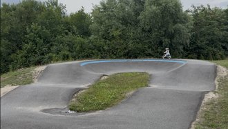 Gesehen im Beech Resort Fleesensee. Ein geteerter Rundkurs mit verschiedenen Ebenen und Wellen und Kurven. Bevsrbsr mot Laufrad, Fahrrad, Roller, Inlineskates, etc.