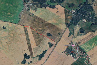 Die Verbindung ist auf dem hochgeladenen Kartenausschnitt rot eingezeichnet. An dieser Stelle befindet sich ohnehin eine massive Treckerspur (irgendwie muss ja auch der Trecker auf diesen riesigen Feldabschnitt kommen) - die Ernteeinbuße somit gering im Falle, dass man aus der Treckerspur einen Weg für alle macht.