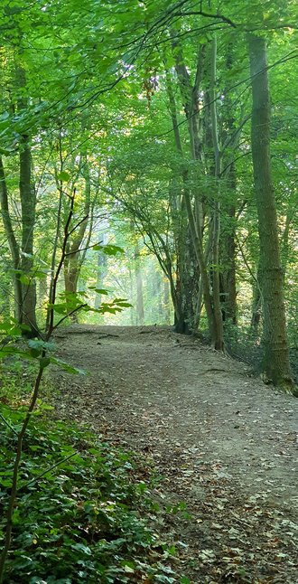 Der zwischen Eider, Kanal und Nordkolleg gelegene Gerhardshain bietet auf vielen Wegen die Möglichkeit für Bewegung im Schatten. Die hohen Buchen und anderen Bäume halten wunderbar die Feuchtigkeit. Einige Parkbänke zum Verweilen gibt es auch.